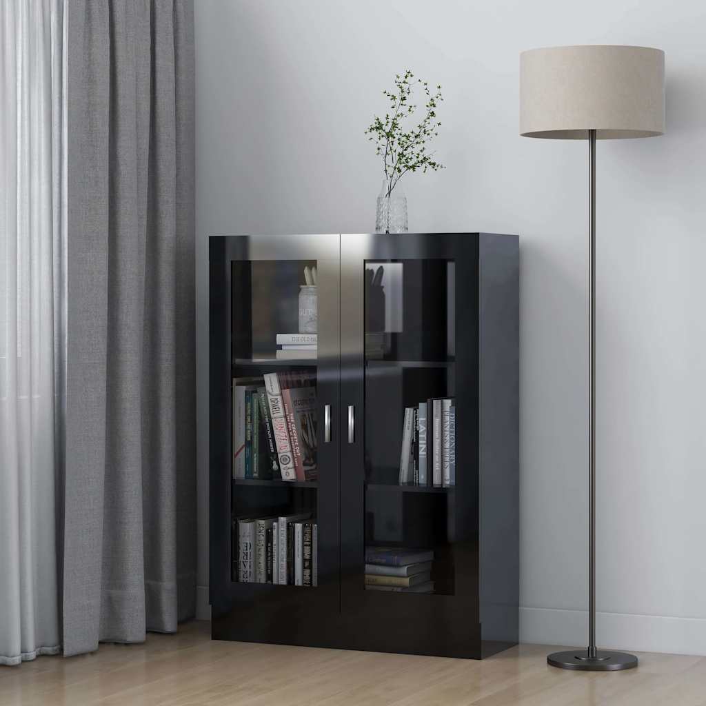 Vitrinskåp Svart Högglans 82,5x30,5x115 cm