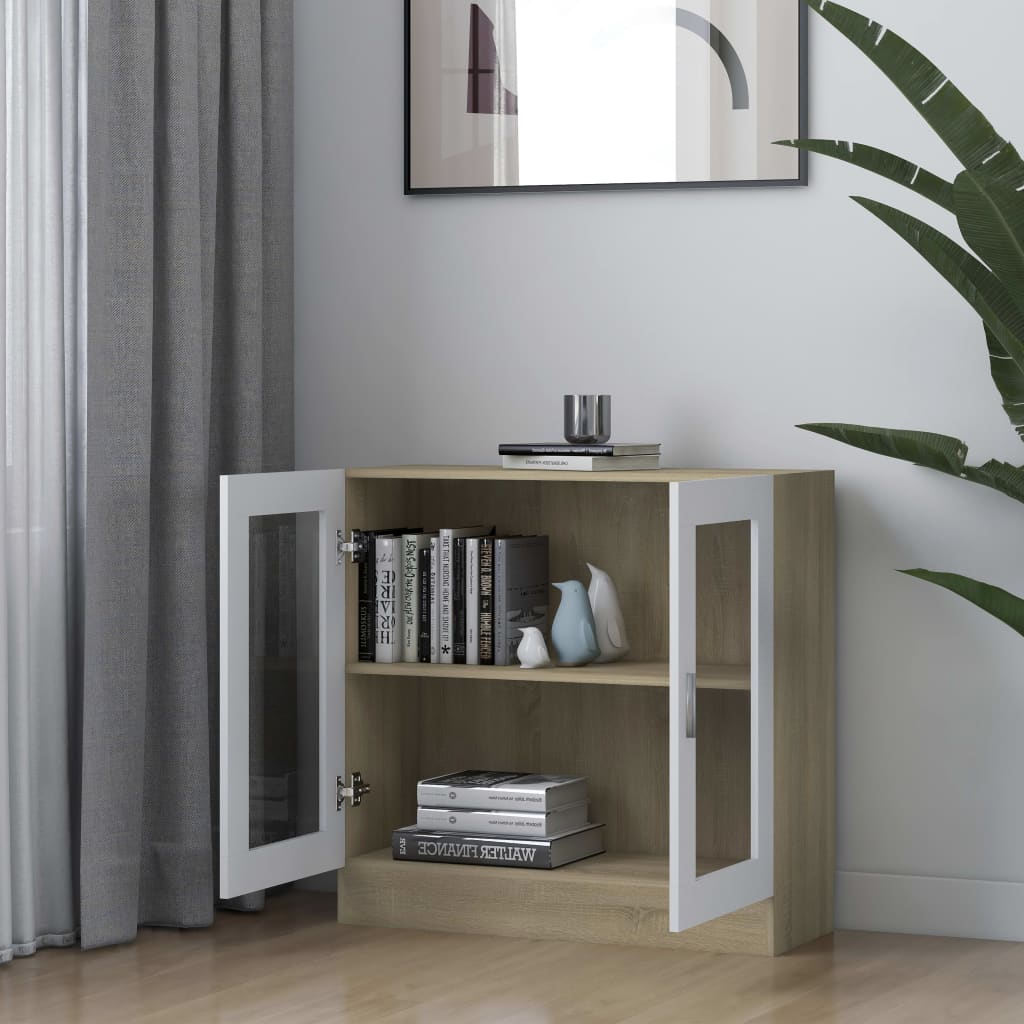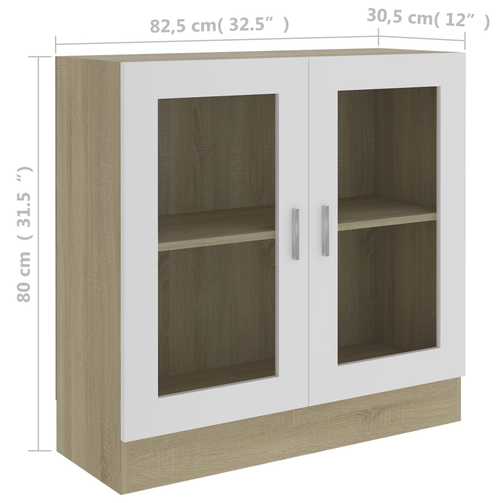 Vitrinskåp Vit och Sonoma Ek 82,5x30,5x80 cm