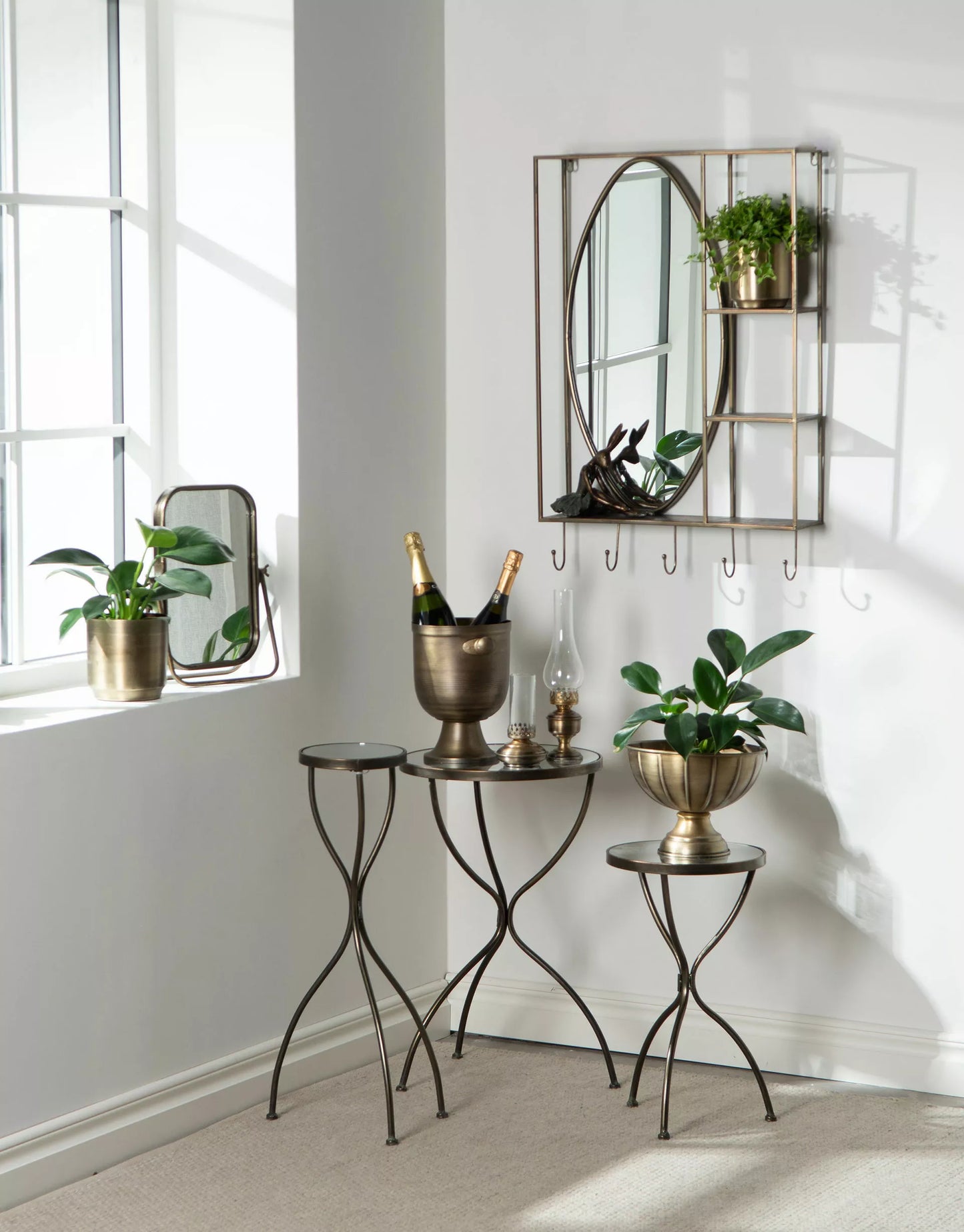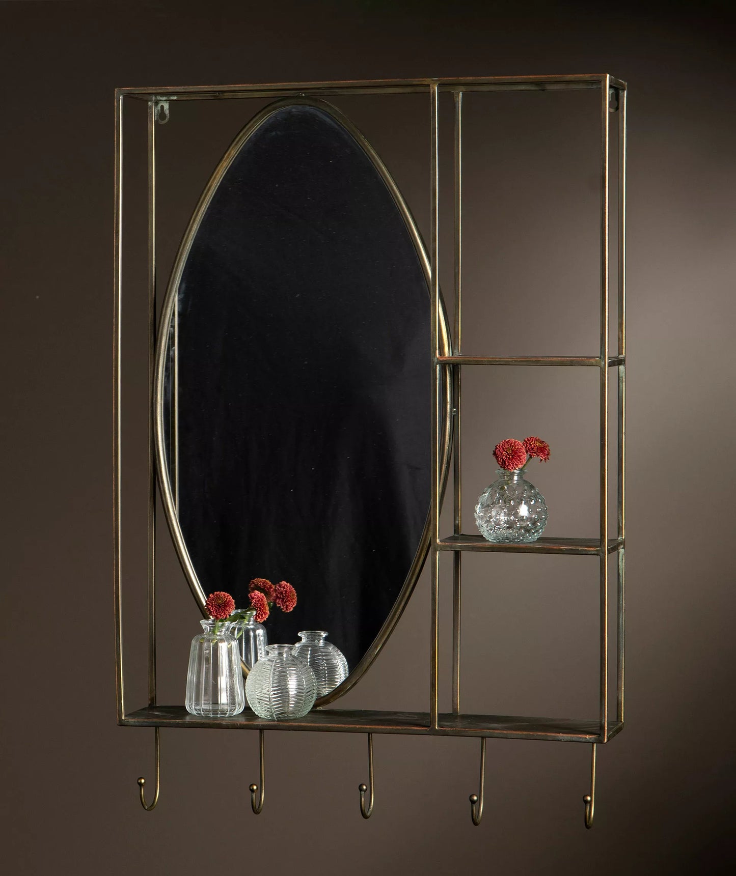 Väggspegel Spegelhylla Antik Mässing 57,5x13x84cm